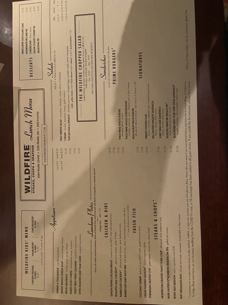 Welcome to Wildfire, an elegant American steakhouse nestled in Eden Prairie, MN. This vibrant dining destination is perfect for everything from casual family dinners to special gatherings. The menu boasts a range of delectable options, including tender cuts of beef and a variety of vegetarian selections to satisfy diverse palates.